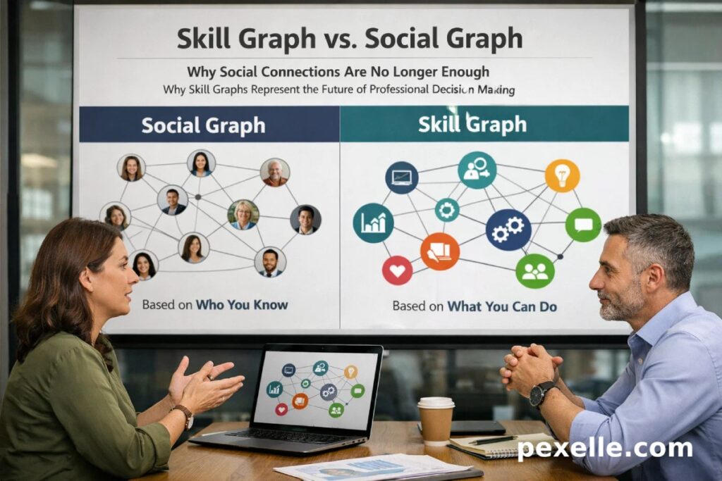 For many years, the professional world has been strongly shaped by the Social Graph. This model focuses on relationships between people, showing who knows whom, who interacts with whom, and who has access to influential networks. It has played a major role in hiring, recruiting, partnerships, and reputation building. In a world where access to opportunity was often tied to visibility and connections, the Social Graph appeared to be a powerful tool. However, the demands of modern work have changed. Today, organizations need to evaluate not only relationships, but also capability, readiness, and proof of performance. That is why the Skill Graph is becoming far more important in professional decision making.